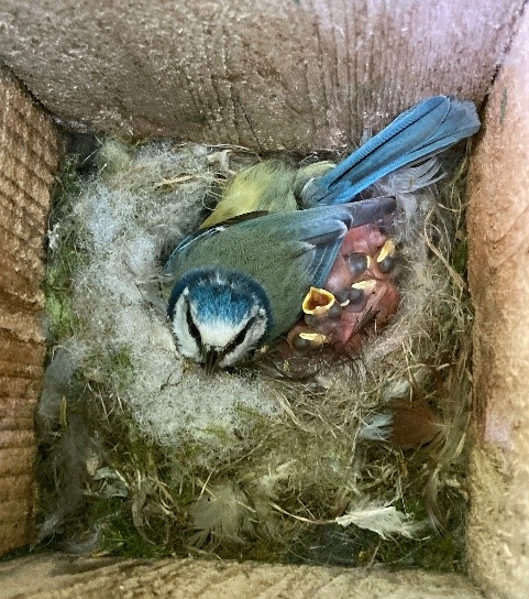 Een bijzondere situatie deed zich wederom voor in de Waterster waar in één kast Kool- en Pimpelmezen samen weer 18 eieren hebben gelegd. Helaas zijn er dit keer geen eieren uitgebroed.